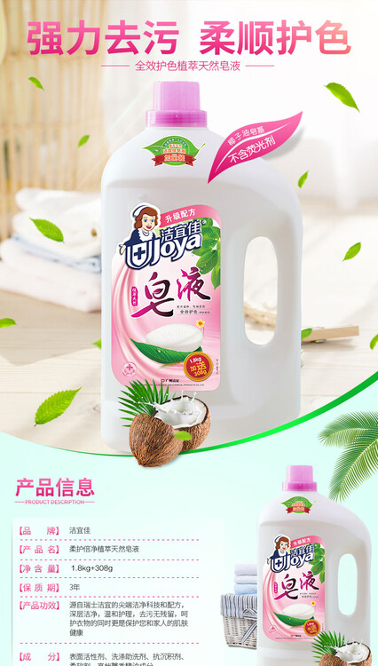 皂液適用于棉、麻、絲、毛(羊毛、羽絨等)、合成纖維及混紡等各種質(zhì)地衣物,寶寶衣物及貼身衣物也適用。皂液是一類新型織物洗滌劑,與普通洗衣液的主要如下:所用原料不同,皂液的特色成分是皂基,其起始原料來自可再生植物。而普通洗衣液活性物主要是烷基苯磺酸鹽、脂肪醇聚氧乙烯醚等,此類表面活性劑一般需采用化學(xué)法合成,難以直接從動植物中獲得。皂基在溫和、去油漬及易漂性能方面表現(xiàn)更佳。