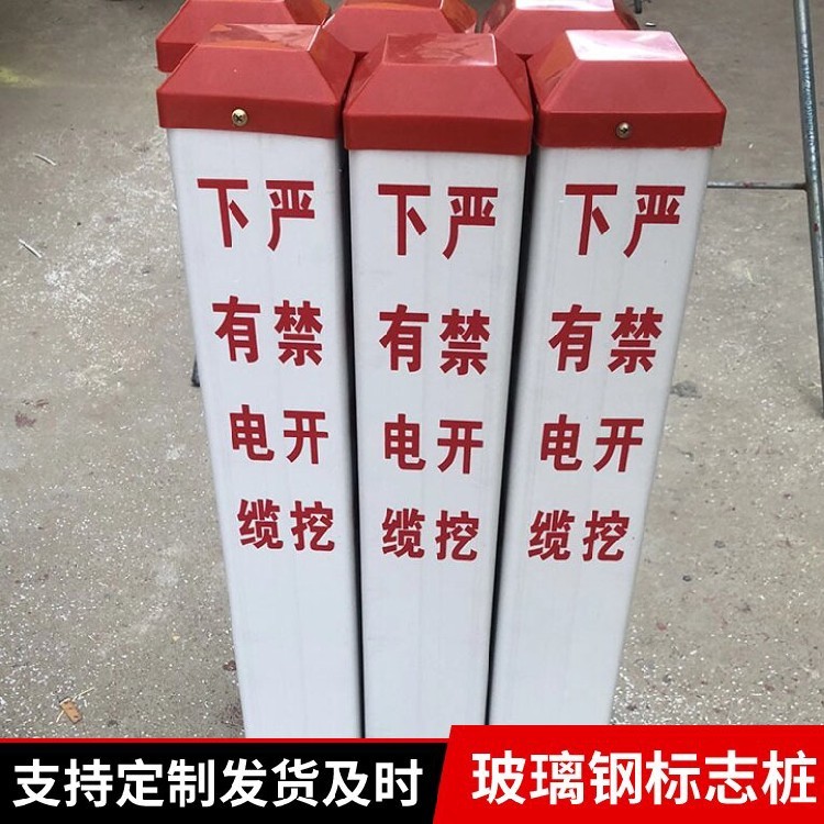 玻璃鋼標(biāo)志樁,又稱作玻璃鋼電纜標(biāo)志樁,玻璃鋼管道標(biāo)志樁,玻璃鋼管線標(biāo)志樁、玻璃鋼燃?xì)鈽?biāo)志樁等。主要采用玻璃鋼材質(zhì)而成,玻璃鋼電纜標(biāo)志樁被廣泛用于:電力、通信、燃?xì)?、自來水、鐵路地理管線路徑通道指示標(biāo)志兼警告牌。玻璃鋼標(biāo)志樁用于鬧市、風(fēng)景區(qū)、綠化帶、灌木叢、頂管兩側(cè)管線路徑指示。警示標(biāo)志樁、牌的內(nèi)容,采用凹凸表現(xiàn)形式,有機(jī)的結(jié)合在玻璃鋼制品的基體表面,立體字型,然后噴刷油漆(或反光油漆)。即使標(biāo)志的油漆掉了,標(biāo)志字模和危險(xiǎn)提醒符號(hào),仍然可以起到警示作用,而且是性的,使用壽命50年以上。