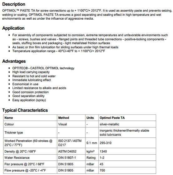 嘉實(shí)多,Optimol Paste TA,潤(rùn)滑脂 |